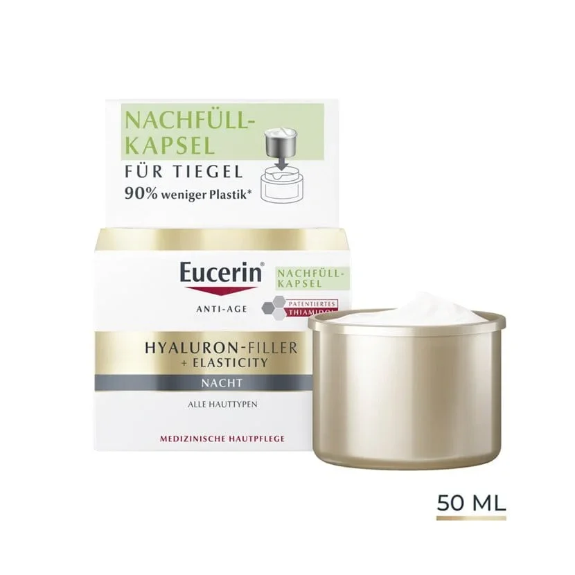 Diese Nachtpflege wirkt gegen tiefe Falten, fördert die Elastizität und reduziert Altersflecken – für eine sichtbar jüngere und straffere Haut. Mit einer Kombination aus Hyaluronsäure, Kollagen-Komplexen, Arganöl und Thiamidol® unterstützt sie die Hautregeneration über Nacht. Für ein frisches, glattes Hautbild.